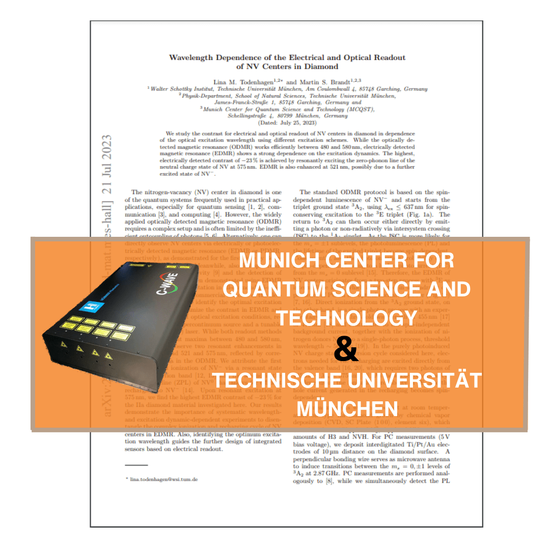 In a recent investigation, researchers at the Munich Center for Quantum Science and Technology, in collaboration with the Technical University of Munich in Germany use our C-WAVE Tunable laser to delve into the nuanced contrasts observed in the electrical and optical readout of NV centers in diamond, shedding light on their dependence on optical excitation wavelength and various excitation schemes.