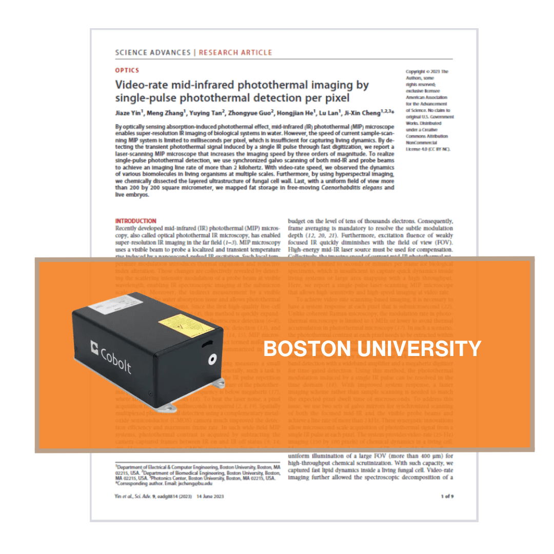 Researchers from Boston University have unveiled a groundbreaking mid-infrared photothermal (MIP) imaging system capable of video-rate imaging by detecting single-pulse photothermal signals per pixel. This innovative system, achieved with the help of our 532 nm Cobolt Samba laser, significantly enhances imaging speed and sensitivity, making it possible to capture dynamic biological processes in real-time.