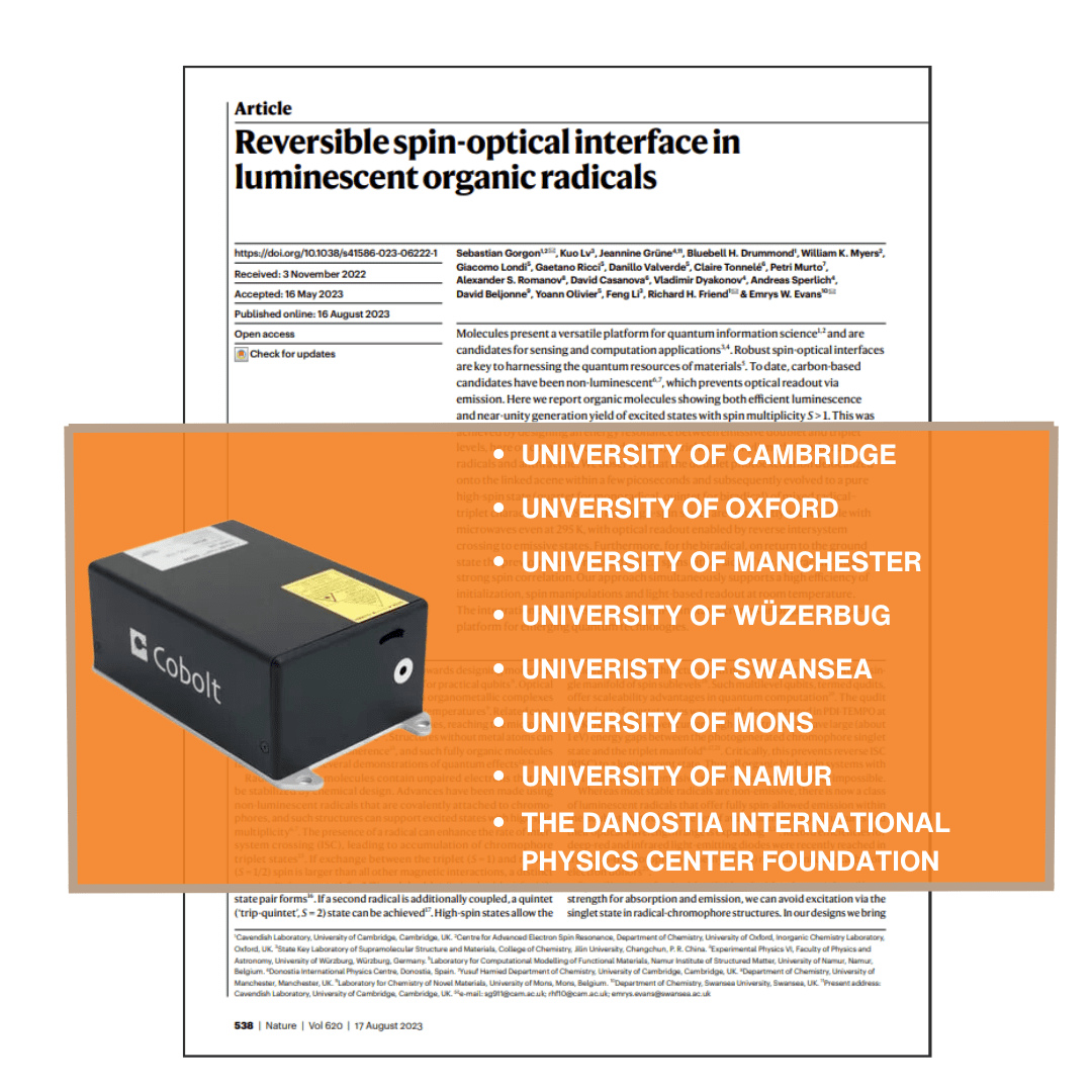 The secret lies in a special design that allows these molecules to switch between different energy states quickly and efficiently. By linking certain chemical groups together, the researchers created a system where energy moves rapidly within the molecule, leading to a bright glow and stable high-spin states, which are crucial for quantum technology. The method supports high efficiency of initialization, spin manipulations, and light-based readout at room temperature. The experiment was conducted with the help of the Cobolt Samba CW 532 nm DPSSL laser.