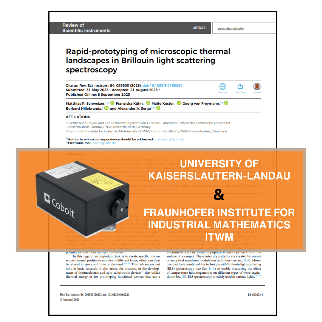 The study, published in Review of Scientific Instruments, details how this innovative setup was done: it employs Brillouin light scattering (BLS) spectroscopy to observe how temperature affects wave-like excitations in materials. In addition, the group use a spatial light modulator (SLM) and our Cobolt Twist 457 nm laser to project customizable heat patterns with micrometer resolution.