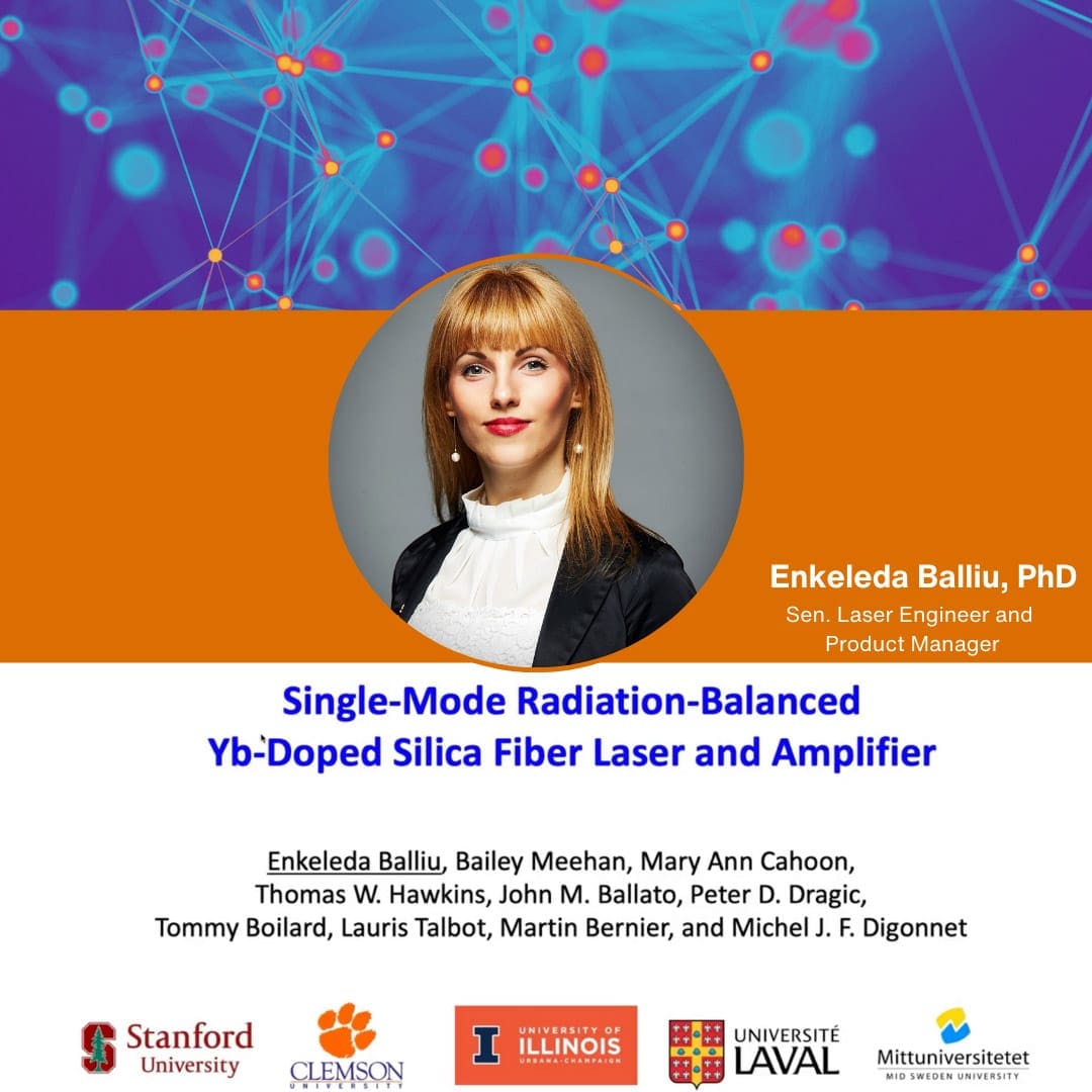 In a recent publication the world’s first single-frequency radiation-balanced fiber amplifier is unveiled. In the research Dr. Enkeleda Balliu, currently Senior Laser Engineer and Product Manager at HÜBNER Photonics, has joined forces with fellow researchers from Stanford University, Clemson University, University of Illinois, and Universite’ Laval (Canada) to elevate the output power of a fiber laser to hundreds of mW and demonstrate the world’s first single-frequency radiation-balanced fiber amplifier.