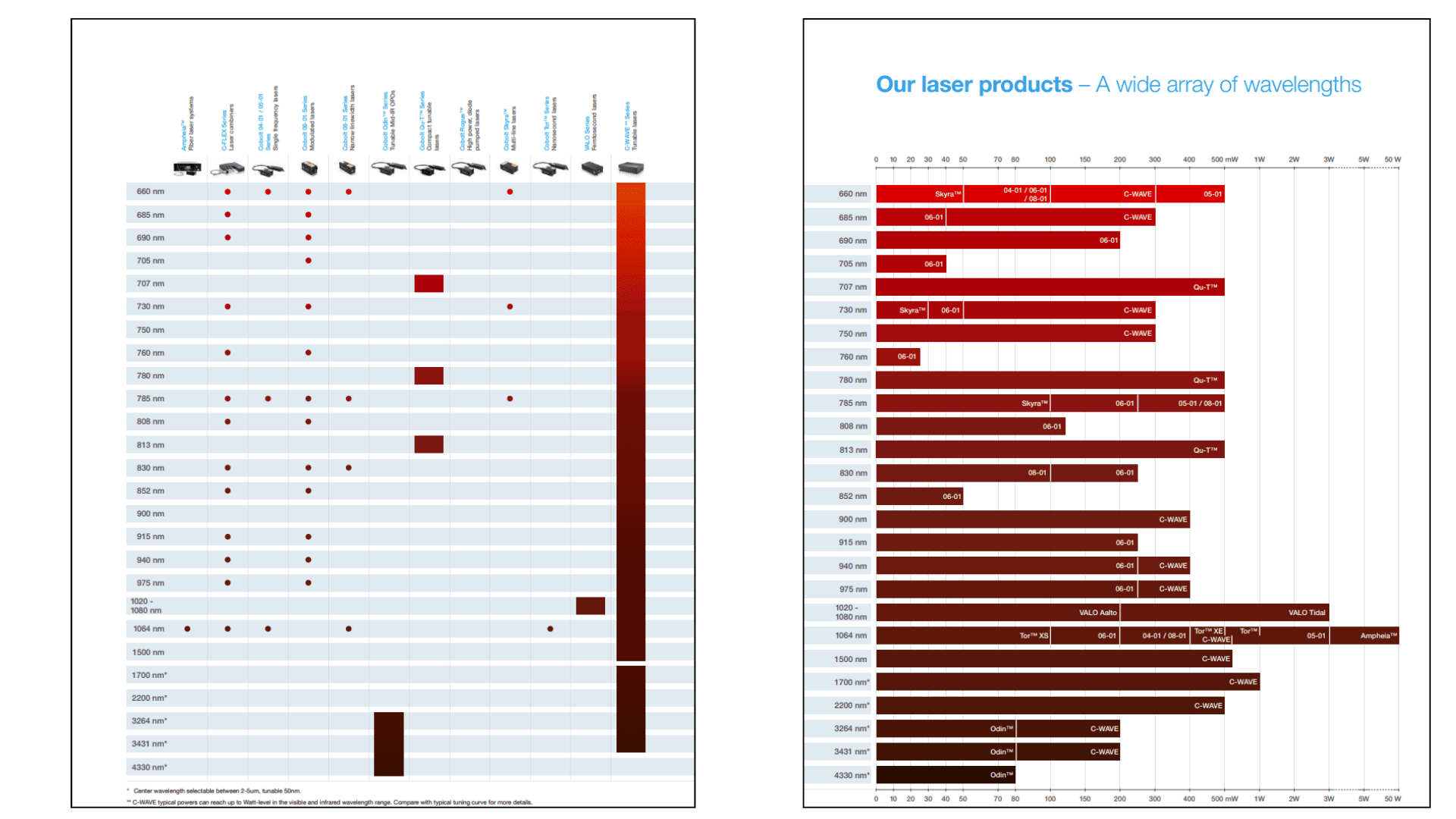 Through the well-known Swedish laser manufacturer Cobolt, a proven supplier of high performance lasers of more than 15 years, HÜBNER Photonics division offers one of the industry’s broadest ranges of compact single-frequency CW lasers, diode lasers, nanosecond and femtosecond lasers as well as tunable lasers across the full UV-Visible-NIR spectrum.